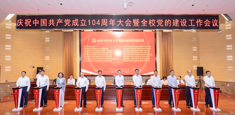 乔学斌为获得“光荣在党50年”纪念章的老党员代表颁发纪念章,并和各附属医院党委书记共同启动了“南京中医药大学校院协同党建联盟”。与会党员校领导为校本部及各附属医院的获奖集体和个人颁奖。会议还解读了创建江苏省党建工作先锋高校实施方案,有关先进基层党组织和优秀共产党员代表作了交流发言。