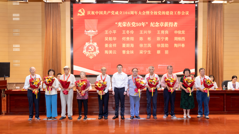 党委副书记、校长程海波宣读了“光荣在党50年”纪念章颁发对象名单。党委常委、副校长方祝元宣读了先进基层党组织、校院协同先锋党组织、优秀共产党员、优秀党务工作者、优秀党支部书记表彰名单。