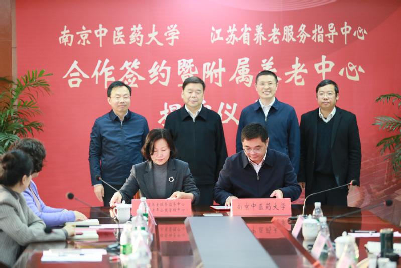 1月6日,南京中医药大学与江苏省养老服务指导中心合作签约暨附属养老中心揭牌仪式在江苏省老年公寓举行。江苏省民政厅党组书记、厅长谢晓军,南京中医药大学党委书记乔学斌出席活动。民政厅副厅长邱泽森、学校副校长胡孔法出席并讲话。签约暨揭牌仪式由民政厅副厅长、校养老服务与管理学院院长林莉主持。
